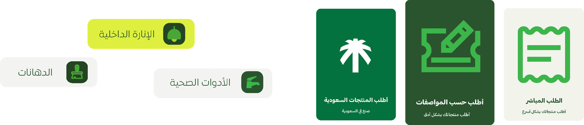 نوفر منتجات متعددة الفئات (سباكة، كهرباء، دهانات، أدوات صحية وغيرها) بجودة معتمدة وتوريد مباشر للمواقع.